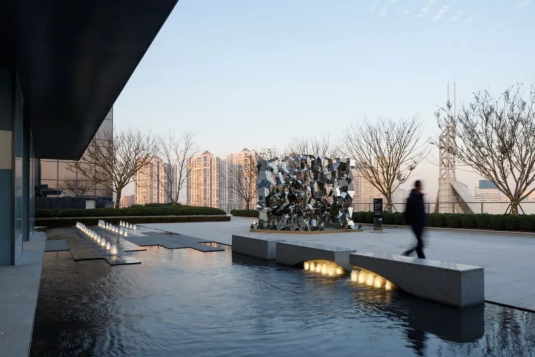 景觀設計由P LANDSCAPE負責。既契合?“三面云山一面城” 的西湖風貌,隱于湖城;又兼顧“毗鄰京杭大運河”的城市風貌。以“棲水而居的城市意蘊,優雅時尚的活力中心”為理念,塑造杭州中心四季酒店的景觀設計。