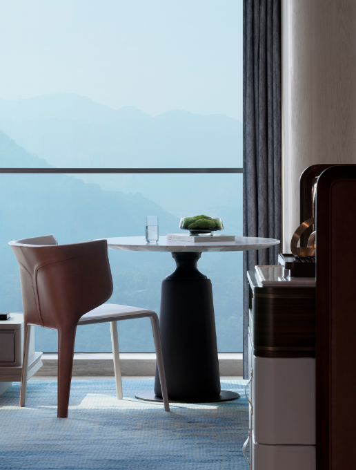 271間云端客房設計簡約時尚,優雅別致山色含黛,華燈初上足不出戶即可將美景盡收眼底。