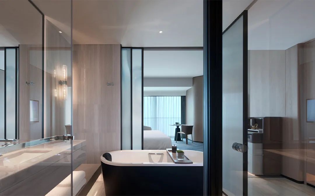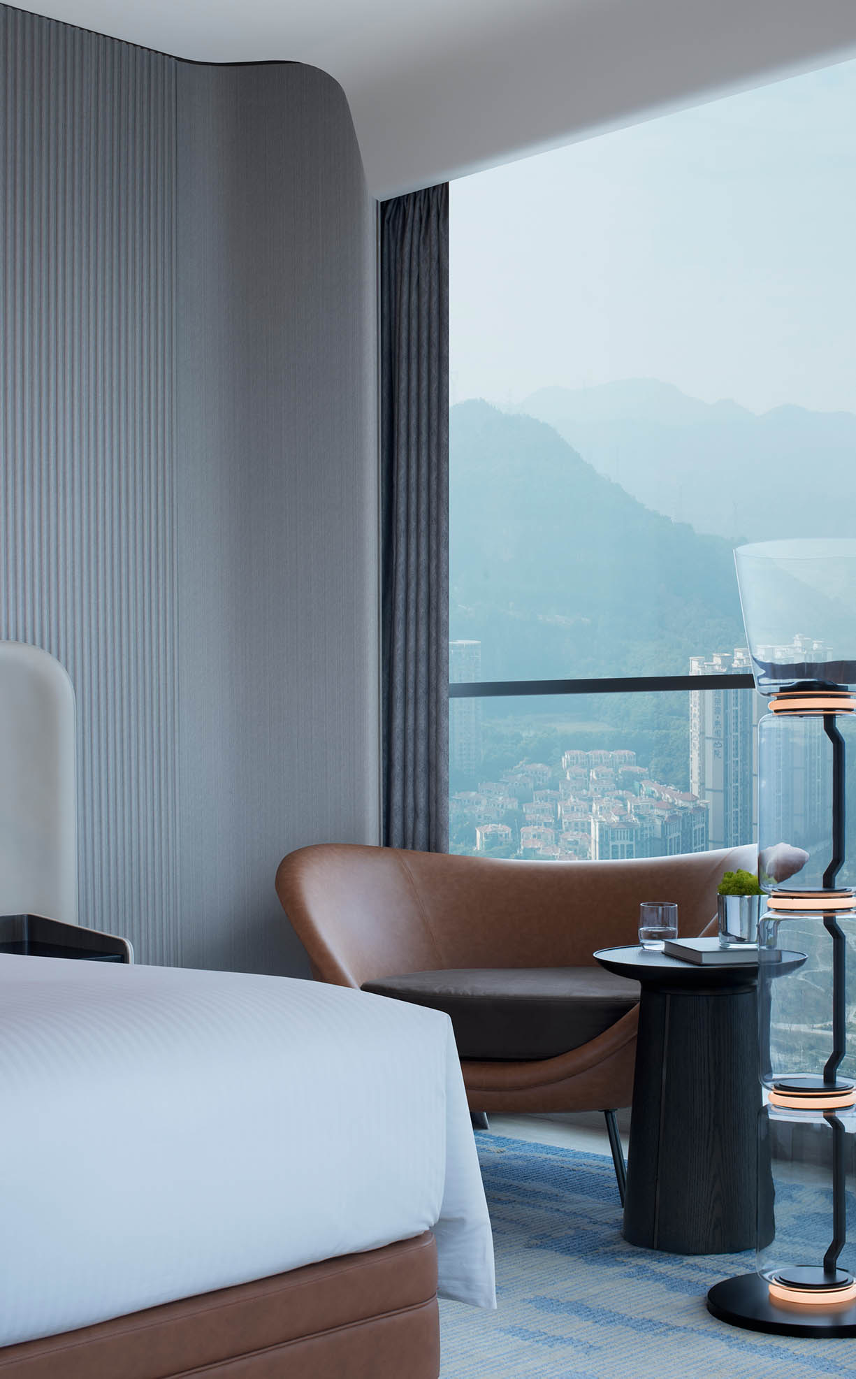 特別設計的幕墻內置式智能新風系統讓全幕玻璃窗無縫迎接四時美景,并引入自然通風,節約能耗。客房內設施齊全,現代時尚,格調雅致,床具采用標志性的鉑爾曼床墊,確保客人擁有最佳的睡眠體驗。
