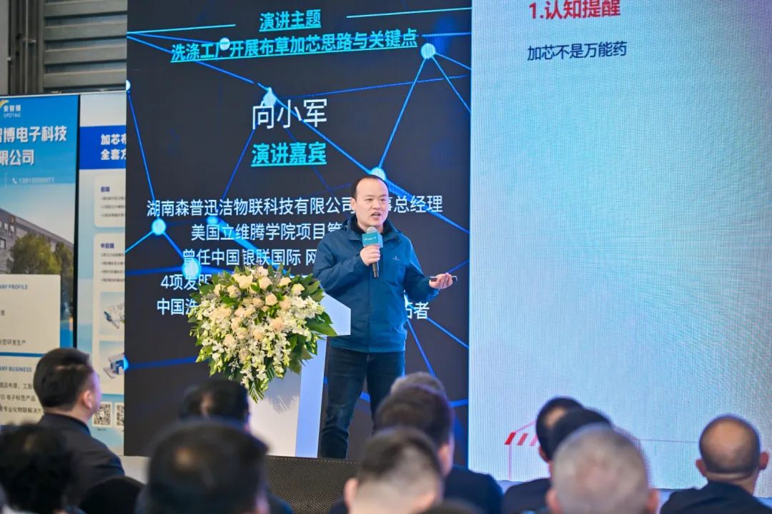 湖南森普迅潔物聯(lián)科技有限公司董事總經(jīng)理向小軍先生,介紹了森普迅潔的高效快速布草加芯方案,涵蓋了系統(tǒng)軟硬件以及為洗滌廠經(jīng)營共享布草提供的金融幫扶計(jì)劃。其硬件產(chǎn)品如智能工作臺、手持機(jī)、便攜式 RFID 掃描器和超高頻 RFID 芯片等,具備高效的數(shù)據(jù)采集和處理能力;軟件系統(tǒng)則能實(shí)現(xiàn)對布草位置的精準(zhǔn)標(biāo)記和監(jiān)控。金融幫扶計(jì)劃更是為洗滌廠提供了資金支持,助力其更好地開展布草加芯業(yè)務(wù)。